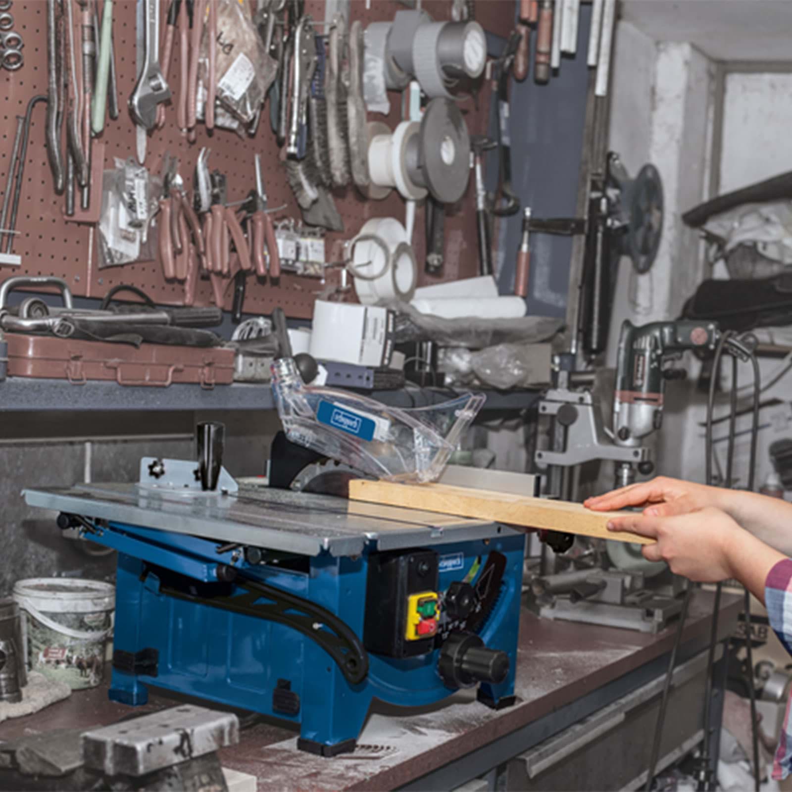 Die HS80 von scheppach ist eine kraftvolle kleine Tischkreissäge für verschiedene Holzbearbeitungen im Heimwerker Bereich. Gerad-, Schräg- und Gehrungsschnitte mit diversen Winkeln lassen sich mit der HS80 Tischkreissäge ganz einfach bewerkstelligen. Durch die kompakte Bauart und den 525 x 400 mm Arbeitstisch ist sie besonders für kleine Werkstätten geeignet.